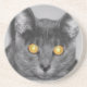 Une photo qui regarde droit devant un chat gris aux yeux dorés. Modifié avec une coloration sélective pour souligner les yeux fascinants.