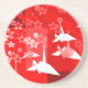 Beaux dessous de verre, avec l'illustration numérique inspirée japonaise des grues et des fleurs de cerisier d'origami, en rouge et blanc. Une grande manière de décorer et liven vers le haut de toute pièce. Customisez ces grands dessous de verre pour ajouter n'importe quel texte à lui. Fait de grands cadeaux.