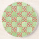 Un Dessous de verre de grès rond chic, de style champêtre, mixe'n'match motifs de dragons rouges mignons sur un chèque vert et blanc en vichy arrière - plan.