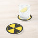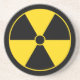 Dessous de verre en grès avec symbole de rayonnement jaune et noir.