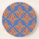 Un élégant dessous de verre en grès, avec un motif traditionnel "fleur de lys" en bordeaux, rouge et or, d'un design numérique de Judy Adamson.