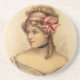 Dessous de verre en grès avec une belle femme victorienne avec un nœud rose pâle dans les cheveux.