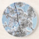 Ce charmant dessous de verre présente de jolies fleurs blanches du printemps contre un arrière - plan bleu doux pour un look frais et féminin.