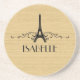Elégant et chic Dessous de verre de grès à la française avec un faux arrière - plan à grain de bois et un design Tour Eiffel en noir orné de cascades de tourbillons élégants. Ce design girly et tendance est facile à customiser avec le texte personnalisé de votre choix. Cliquez sur "Customiser" pour trouver d'autres options de personnalisation.
