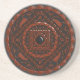 Ce mandala sur le thème de Leo présente une pierre d'onyx entourée du symbole du signe, de la constellation et du symbole alchimique du feu parmi les fibres de cuivre rougeâtres et les tissages gravés.
