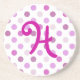 Dessous de verre lunatiques de pierre de monogramme, avec une conception rose et blanche de point de polka. Une grande une initiale rose de lettre, au milieu, est personnalisable. Personnalisez avec la lettre de votre choix. Les grands dessous de verre pour n'importe quelle pièce de la maison, et un ensemble feraient un beau cadeau pour n'importe quelle occasion.