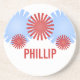 Fun et funky Dessous de verre Retro Fireworks avec des graphiques de feux d'artifice audacieux et uniques en rouge et bleu clair. Ce dessous de verre cool branché ajoute un peu de patriotisme tout en protégeant vos meubles ! Customiser avec un nom ou un autre texte.