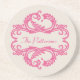 Dessous de verre chic Damask élégant et sophistiqué, avec un arrière - plan beige doux et un élégant décor damassé fleuri en magenta. Ce design moderne est facile à customiser avec votre propre texte. Cliquez sur "Customiser" pour trouver d'autres options de personnalisation.