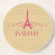 Elégant et chic Dessous de verre de grès à la française, avec un faux arrière - plan à grain de bois et un design tour Eiffel en magenta orné de cascades de tourbillons élégants. Ce design girly et tendance est facile à customiser avec le texte personnalisé de votre choix. Cliquez sur "Customiser" pour trouver d'autres options de personnalisation.