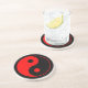Dessous de verre de grès avec le symbole rouge et noir de yang de yin.