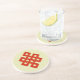 Ces dessous de verre comportent un noeud sans fin (éternel ou le noeud de dragon), l'un des huit Symbold propice du bouddhisme, en rouge sur un arrière - plan jaune.