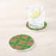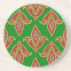 Un élégant dessous de verre de boisson en grès, avec un motif "fleur de lys" dans le rouge profond et l'or sur un arrière - plan vert foncé, avec une garniture noire.