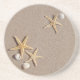 Échouez les dessous de verre de thème, avec deux étoiles de mer dans le sable. Customisez avec votre propre texte si vous souhaitez.
