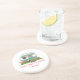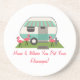Des dessous de verre comportant une illustration d'une rétro maison de remorque avec la rayure de turquoise et la tente et trois flamants en plastique roses dans la cour. Le texte personnalisable indique que "à la maison est où vous mettez vos Flamants roses !"