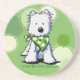 Dessous de verre en grès avec des peintures de chiens de race blanche de terrier blanc de l'ouest de l'altitude par le livre pour enfants Illustrator, Kim Niles.