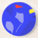 Ce dessous de verre en grès présente une image arrière - plan bleu électrique, d'où émergent des feuilles bleu clair, orange, bleu marine et jaune.