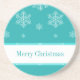 Whimsical and fun Let it Snow Holiday Dessous de verre en turquoise avec une cascade de flocons de neige dessinés à la main. Ce dessous de verre en grès amusant est parfait pour ajouter un peu de fraicheur saisonnier à tout décor tout en protégeant votre mobilier. Facile à customiser, ajoutez simplement le texte personnalisé de votre choix.