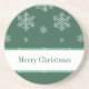 Whimsical and fun Let it Snow Holiday Dessous de verre en vert foncé avec une cascade de flocons de neige dessinés à la main. Ce dessous de verre en grès amusant est parfait pour ajouter un peu de fraicheur saisonnier à tout décor tout en protégeant votre mobilier. Facile à customiser, ajoutez simplement le texte personnalisé de votre choix.