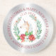 Jolie licorne de Noël avec composition poinsettia avec une bordure gris argenté et blanche et un texte personnalisable.