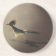 Un roadrunner coloré avec un ver rose juteux dans lui est des courses de bec à travers l'image.