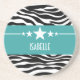 Dessous de verre moderne et tendance Sassy Star Zebra Sandstone avec un arrière - plan design en zèbre noir et blanc et une bordure turquoise audacieuse ornée d'un motif étoilé amusant. Ce design girly peut être customisé avec le texte personnalisé de votre choix. Cliquez sur "Customiser" pour trouver d'autres options de personnalisation.