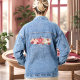 En Jean Boho Automne Citrouille Texte Denim Veste