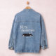 Si romantique et rétro ! Mme Et le nom de la mariée Après le jour de mariage avec le Mariage Date sur le dos de la jolie et Whimsical Pink and Black Classic Voiture sur le dos de cette très mignonne Veste Denim pour la mariée nouvelle lune de miel.