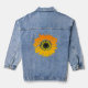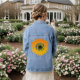 Tournesol jaune et orange sur le dos de cette veste Denim. Sélectionnez votre taille appropriée dans le menu déroulant.