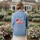 Cette veste en denim tendance est accentuée avec Bride, écrit en rouge et blanc de fantaisie, portant un chapeau de Père Noël amusant, ce qui le rend parfait pour la saison des fêtes.