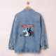 Veste Denim Femme Mariée avec mariée et groom à vélo en tandem.