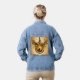 Cette veste en denim dégage une énergie sombre et menaçante. Le tissu est noir profond, presque absorbant la lumière, avec une couture subtile rouge sang le long des coutures. La veste a un aspect fatigué, usé, avec des bords effilés et des larmes aléatoires qui suggèrent une histoire sinistre. Les boutons sont noirs mat, gravés de symboles abstraits et étranges qui semblent se déplacer sous un examen minutieux.De l'autre côté du dos, une grande figure ombragée est brodée, sa forme tordue et indistincte, comme si elle émergeait de l'obscurité elle-même. Le collier est légèrement retourné, donnant au porteur une aura mystérieuse et menaçante. Dans l'ensemble, cette veste en jean allie style classique et sentiment de crainte, ce qui la rend parfaite pour ceux qui marchent la ligne entre style et obscurité.