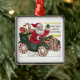 Ajoutez le texte pour faire cet ornement de Noël personnalisé. Père Noël drôle dans une voiture de ruban de sucrerie. Ajoutez votre nom de famille ou quelqu'un d'autre.