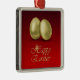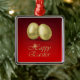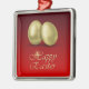 Illustration glamour avec 2 oeufs de pâques dorés sur un arrière - plan rouge.