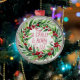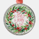 Typographie Rouge simple Ornement de couronne de Noël, Élégant Script, "Pour nous un enfant est né" Design Floral Berry Vert et Rouge, tout comme Les Ornements Précieux que ma mère avait de retour dans la journée. Concevoir ce morceau a ramené de doux souvenirs de "Ne touchez pas à l'arbre" ! Artiste Tanya Arseneau Nanniesfineart