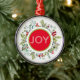 Un accueil de vacances simple et moderne sur votre choix de décoration. Ce joli petit coupe-arbre comporte une courroie aquarelle gaie avec un message de fête JOIE ! (REMARQUE : Certains styles sont disponibles avec un message personnalisable sur l'envers ornement). Fait un cadeau de conservation réfléchi. Paix, amour et joie pour vous ce Noël et toujours.