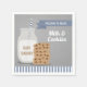 Un design amusant et ludique avec des biscuits à puces de chocolat, du lait et une paille rayée. Les couleurs sont gris, bleu et blanc. Idéal pour des fêtes comme un baby shower ou un anniversaire. Bon design pour enfants et bébés.