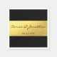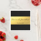 Serviette mariage de luxe en noir avec fausse feuille d'or avec des noms personnalisables et la date du mariage.