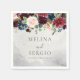 Complimentez votre événement mariage rustique avec cette fantaisie classique rose fleurs de pivoine serviettes mariages. Le design présente de belles fleurs rose, rousses, bleues, navales et bordeaux peintes à la main et agrémentées de feuilles verts, soigneusement groupées en bouquets élégants pour embellir vos cartes d'invitation à l'événement.