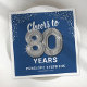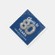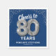 Des serviettes élégantes de fête du quatre-vingtième anniversaire avec un arrière - plan bleu élégant qui peut être changé à n'importe quelle couleur, parties scintillant brillante argent, le dicton "encourage à 80 ans" en utilisant quatre-vingts ballons d'hélium argent, leur nom, et la date de la célébration.