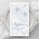 Placez votre table mariage dans un décor élégant avec cette serviette d'hôte bleu poussiéreux, avec l'expression "Bienvenue à NOTRE MARIAGE" en lettres classiques. Conçu pour compléter les thèmes romantiques et fleuris, cette serviette ajoute une touche raffinée et soignée à votre décor de réception. Idéal pour des lieux individuels, des buffets ou des tables d'accueil.