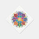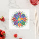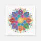 Mandala circulaire symétrique présentant des pétales de lotus colorés et des motifs floraux complexes sur fond blanc.