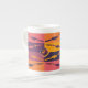 jolie porcelaine, bonne dimension effet brillant bien dans l'ensemble. Le motif et les couleurs sont réussis.Je trouve néanmoins dommage de ne pas occuper tout l'espace avc le motif car la partie rouge au dos de la tasse est trop présente et pas intéressante visuellement.