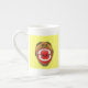 jolie porcelaine, bonne dimension effet brillant bien dans l'ensemble. Le motif et les couleurs sont réussis.Je trouve néanmoins dommage de ne pas occuper tout l'espace avc le motif car la partie rouge au dos de la tasse est trop présente et pas intéressante visuellement.