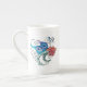jolie porcelaine, bonne dimension effet brillant bien dans l'ensemble. Le motif et les couleurs sont réussis.Je trouve néanmoins dommage de ne pas occuper tout l'espace avc le motif car la partie rouge au dos de la tasse est trop présente et pas intéressante visuellement.