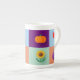 jolie porcelaine, bonne dimension effet brillant bien dans l'ensemble. Le motif et les couleurs sont réussis.Je trouve néanmoins dommage de ne pas occuper tout l'espace avc le motif car la partie rouge au dos de la tasse est trop présente et pas intéressante visuellement.