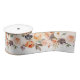 Ce ruban satiné de 3 pouces de large a un joli design floral d'automne. Les couleurs utilisées comprennent le rougissement, la pêche, l'orange et l'olive. Tout est affiché sur un arrière - plan blanc immaculé. Un bel ajout à vos cadeaux et à votre décor pendant l'automne ! Ce ruban est également livré en largeur 1,5" et coordonné avec la collection de Citrouilles floraux Give Thanks.