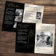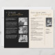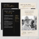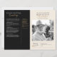 Cette conception élégante de programme commémoratif présente une palette de couleurs raffinée noire et crème avec des polices modernes serif et script manuscrites, créant un hommage sincère et digne à un être cher. La mise en page allie une typographie réfléchie à des espaces pour des titres personnalisés, des remerciements personnalisés et des photos en noir et blanc, ce qui la rend idéale pour une célébration de la vie ou un service funèbre. Des accents dorés subtils ajoutent une touche de sophistication, tandis que le format structuré permet une présentation organisée des éloges, des lectures et des activités commémoratives. Ce modèle entièrement éditable offre une belle façon d'honorer une vie bien vécue, combinant un style intemporel avec une personnalisation significative pour un souvenir inoubliable.