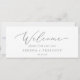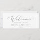 Cet en-tête de bienvenue argenté et délicat est parfait pour un mariage moderne. Le design minimaliste romantique présente une belle et élégante typographie gris argenté sur un arrière - plan blanc au look épuré et simple. La carte s'imprime à l'avant et à l'arrière (double face). Veuillez consulter la collection pour connaître les cartes de classement des sièges du numéro de table de coordination.