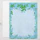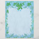 Tortue de mer verte en style découpé contre à damiers arrière - plan bleu. Papier à lettres sans doublure. Papier à en-tête blanc avec bordure stylisée en flamme.