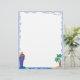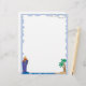 En-tête de cette lettre de vacances, vous trouverez une frontière bleu clair, une île avec des palmiers en bas à droite, et un grand bateau de croisière bleu en bas à gauche.
